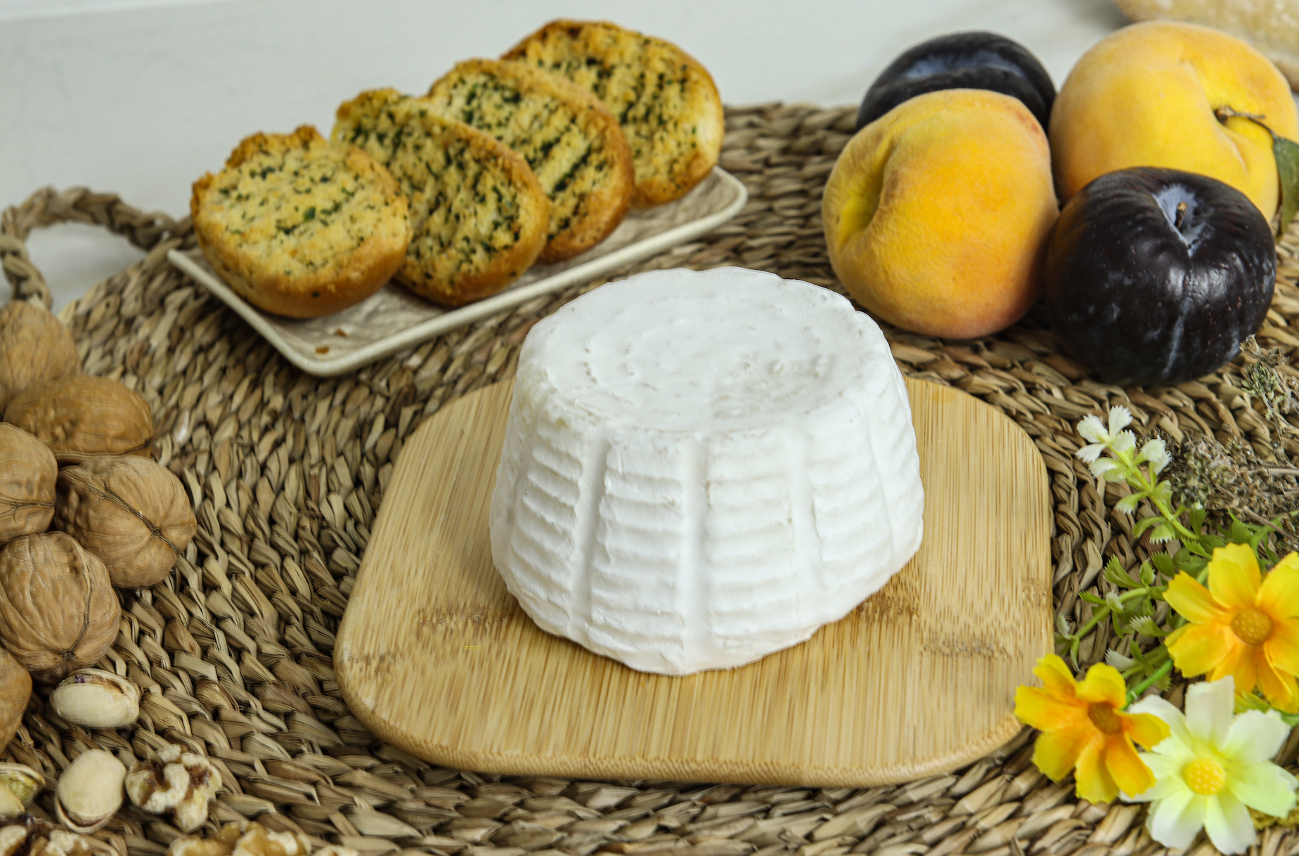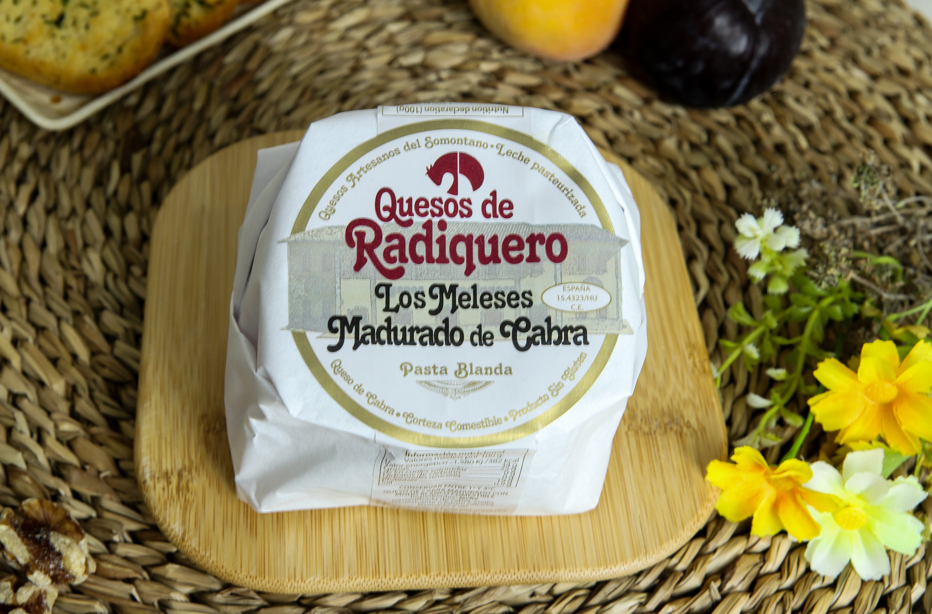 Los Meleses es un queso de cabra artesanal de pasta blanda con moho blanco, elaborado con leche pasteurizada y cuajo de origen animal, sin conservantes añadidos.